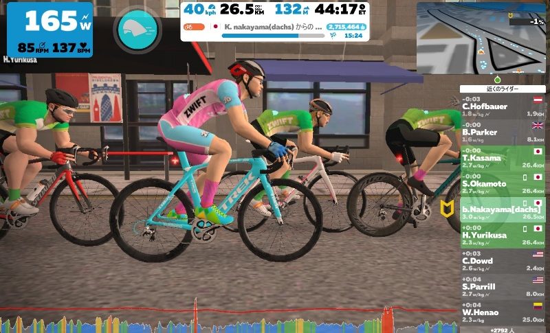その内3回はMeetupというズイフトの練習会の様な機能、知り合いをグループにして誘って同じ時間に走り始めてトレーニングをする機能。