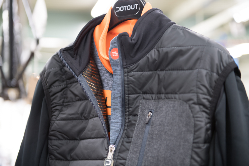 外側の生地は、2層の防風生地と高品質キルティングナイロン撥水加工が施されたDot Air & Water Block 10,000 mmメンブレンの組み合わせ。