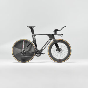 タイムトライアルだけではなく、トライアスロンバイクとして組み立てることも可能!